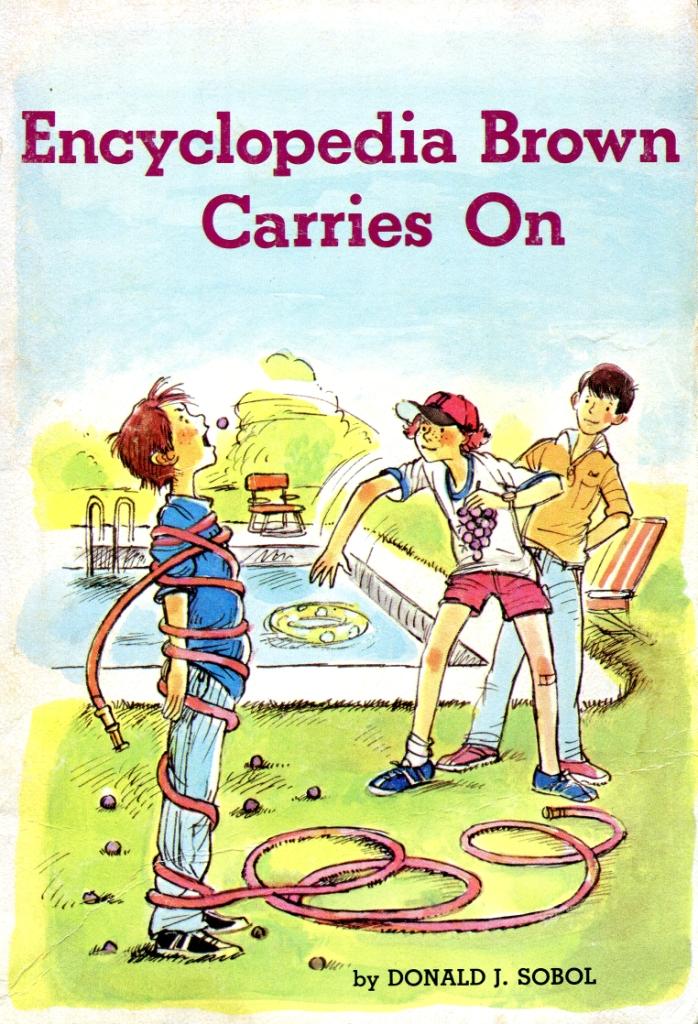 We’re onto better things with ‘The Case of the Grape Catcher’, with Sally Kimball employed by Edsel Wagonbottom to throw grapes that he catches in his mouth: “I figure to set an American record for boys — two hundred feet, hand to mouth”. The problem, when it emerges, is a clever one, well-framed by the weirdness of the setup, and interesting because there are solidly three or four ways to solve the difficulty as presented…how often does that happen in an Encyclopedia Brown story? Sobol’s answer is fine, but there’s fun to be hand in devising your own alternatives.