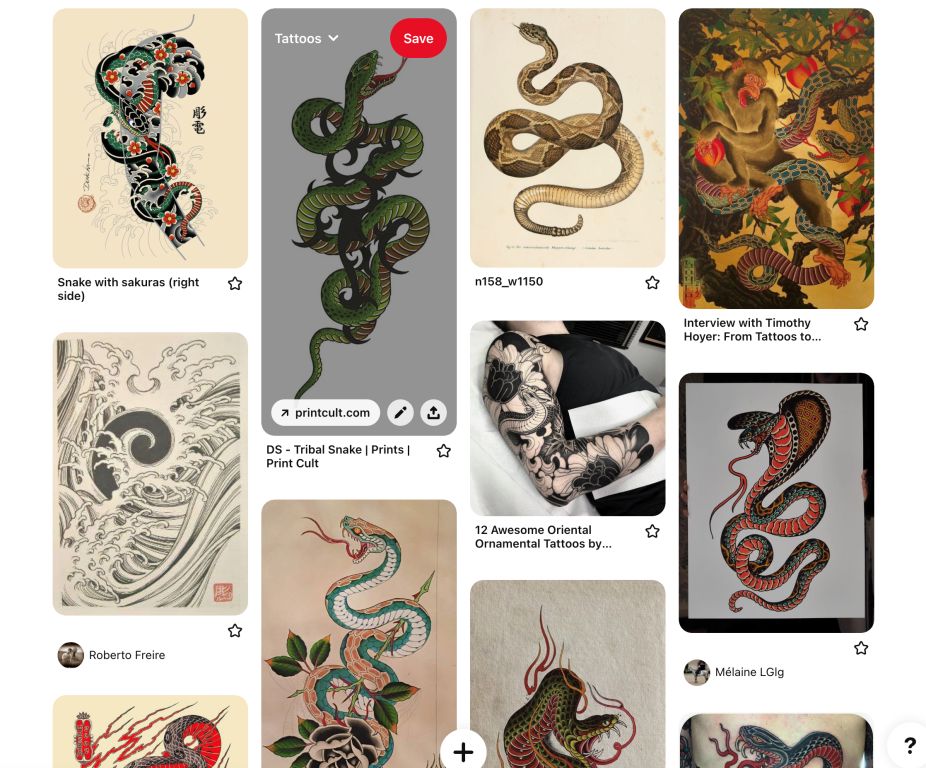 I did a lot of research and gathered images of snakes, snake tattoos and beautiful tattoos in general as inspiration. I had two routes in my mind – one to show the full snake and one to show a close up of the scales of the snake, leading to a simpler, bold typographic jacket [click any of the images in this post to see a larger version]: