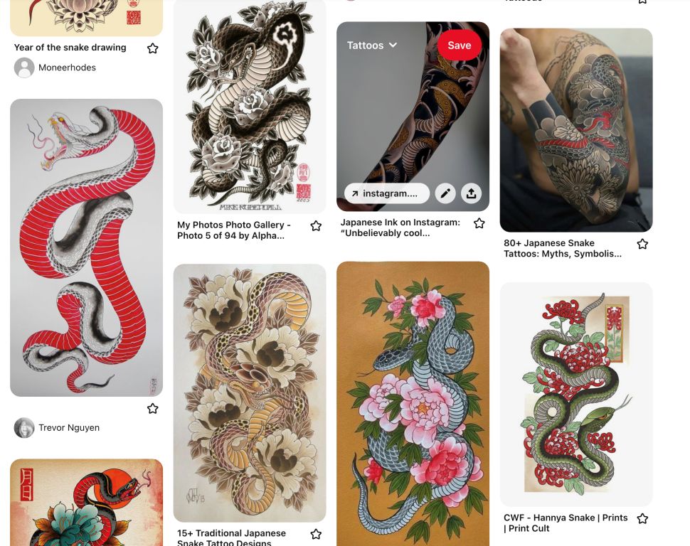 I started off by researching traditional Japanese tattoos. Each tattoo has a meaning to the individual and shows something symbolically important to them. Kinue Nomura, the woman murdered in the book has a full-body snake tattoo and it seemed like this was the obvious choice for the jacket image.