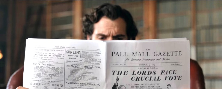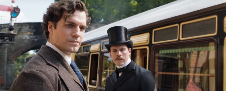 In common with the book, it begins with Enola (Millie Bobby Brown) waking on her birthday — here her sixteenth rather than fourteenth as in the novel — to discover that her mother Eudoria (Helena Bonham Carter) has left, never to return. In short order, Mycroft (Sam Claflin) and Sherlock (Henry Cavill) are therefore recalled to their family pile to offer what assistance they can in finding her. Here comes the first of the very odd decisions, since Claflin is clearly younger than Cavill but playing the older brother as per the canon — Claflin’s good, he always is, investing Mycroft with a prickly, commandeering air that fits as well as anything with a character who’s far more informed by non-canonical texts than Arthur Conan Doyle’s original stories…but even when Cavill’s calling him “older brother” it just never feels right.