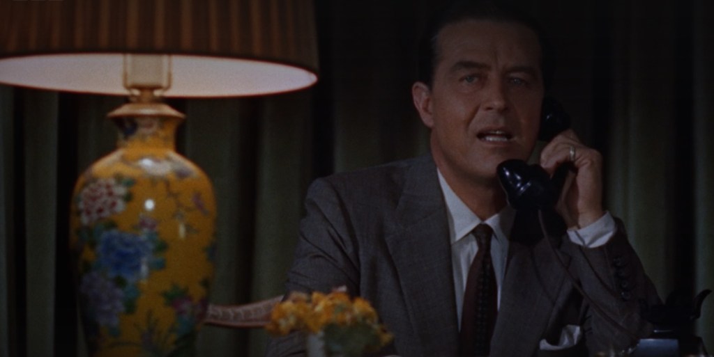 Hitchcock is clever about showing small moments of real significance, like Tony slipping the fatal key under the carpet on the stairs in plain view of Margot and Mark, or the discrepancies in the times on a pair of watches, in a way that truly rewards visual storytelling, rather than speaking down to the audience to explain why these things are important. I seem to remember a quote, possibly misattributed to Steven Spielberg, along the lines that good filmmaking allows you to divine the purpose of a scene even if the sound is turned off, and this is so very true here that you can’t help but marvel at the brilliance of what you’re shown. Hell, there’s even a moment of magnificently dark comedy as Swann waits for Margot to move the telephone receiver away from her face so he can strangle her. Honestly, lighten the score and it could be something out of a Pink Panther movie.