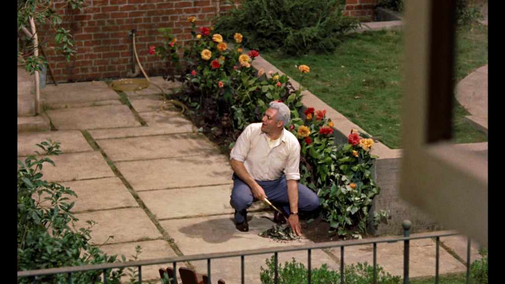 After Hitchcock’s roving camera gives us a neighbourhood baking in a hot summer, we meet the wheelchair-bound L.B. ‘Jeff’ Jefferies (James Stewart), in the final week of confinement before the cast on his broken leg is removed. Clearly he has spent the previous six weeks increasingly frustrated by inaction and increasingly interested by the people he can see from his window. Their various relationships — the antagonism between salesman Lars Thorwald (Raymond Burr) and his wife (Irene Winston), the suitors of dancer Miss Torso (Georgine Darcy) rendering her “like a queen bee with her pick of the drones”, the happy newlyweds (Havis Davenport and Rand Harper) who have moved in nearby — unfold gradually, through not-quite-overheard dialogue and some wonderfully demonstrative mime acting that hits just the right note of naturalism without ever being so subtle as to evade purpose.