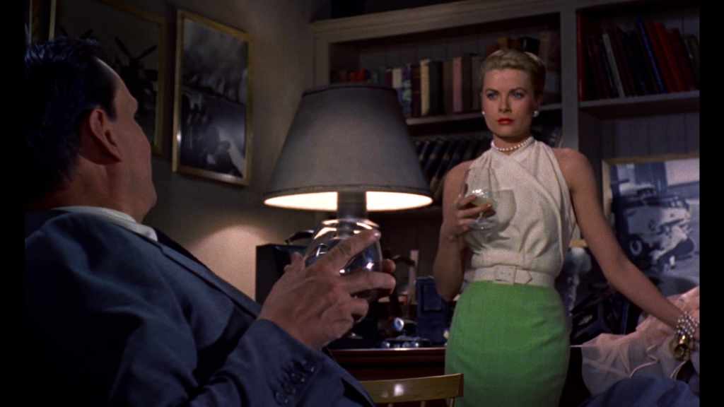 Stewart is, of course, sublime, with that trademark slurred delivery (“It’s just another run-of-the-mill Wednesday. The calendar’s full of ’em.”) put to wonderful use, investing Jeff with an air of concern and longing that the dialogue alone would fail to imply in lesser hands (or, well, a lesser mouth, I suppose). And as he slowly seems to unravel (“Just how long would it take to cut up a human body?”) the use of light and shade is brilliant, with the increasingly-obsessed Jeff rendered in more and more shadowy backgrounds as the apparently blameless people around him live out their lives in the full glare of raised blinds and well-lit spaces. It’s here that the superbly-constructed set really shines, allowing the camera to tell so much of the story and instil so much doubt in the audience without the need to utter a word. For a man whose career was often built in startling imagery — a crop-dusting plane getting ominously closer, a shadow on a shower curtain — it’s wonderful to see Hitchcock embrace purely visual storytelling at times here, recognising that for all the power of the unexpected, it’s often the dullest and most quotidian of events, like a man and a woman leaving an apartment as Jeff dozes, unaware, that can form the basis of the greatest suspense.