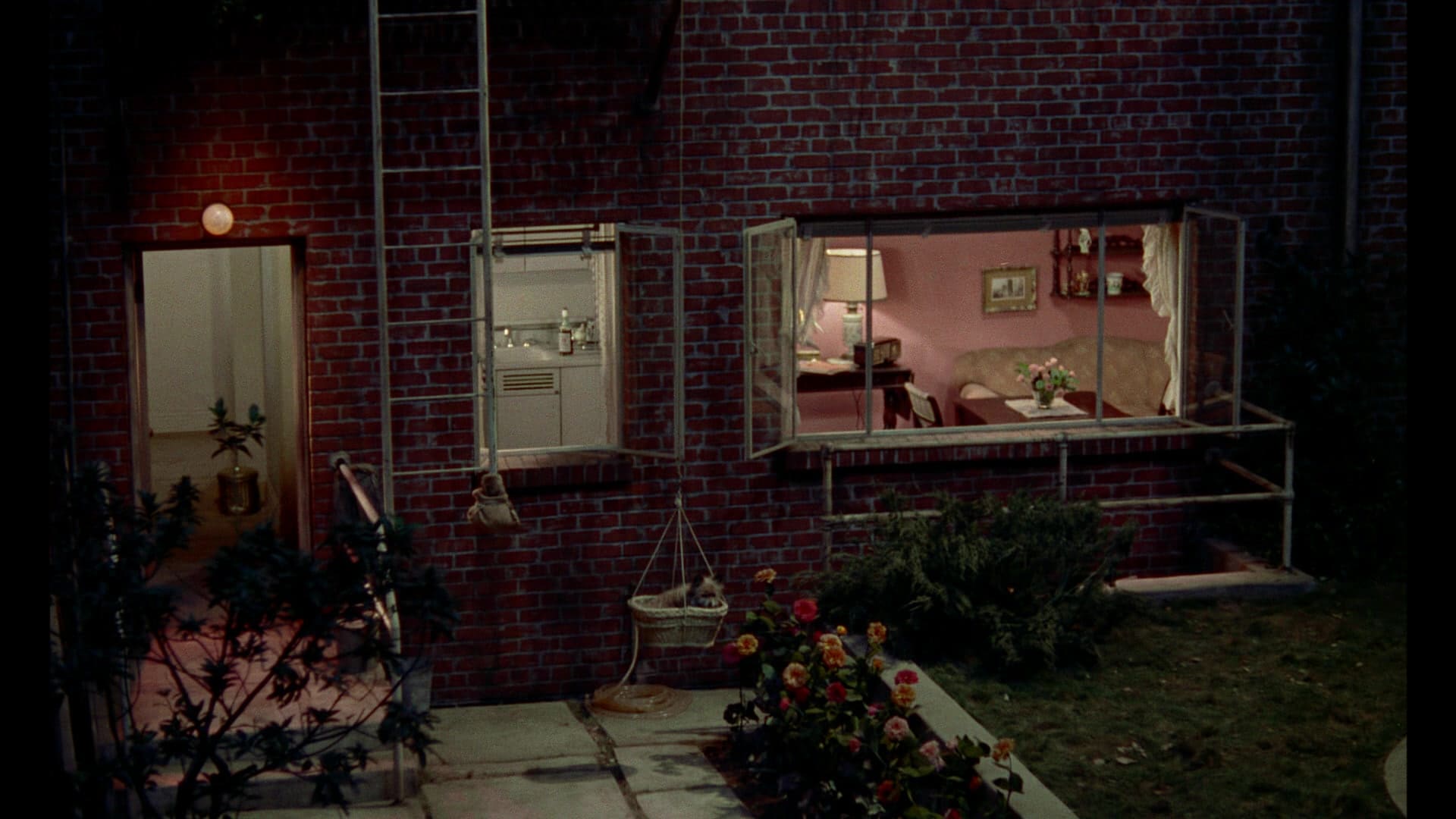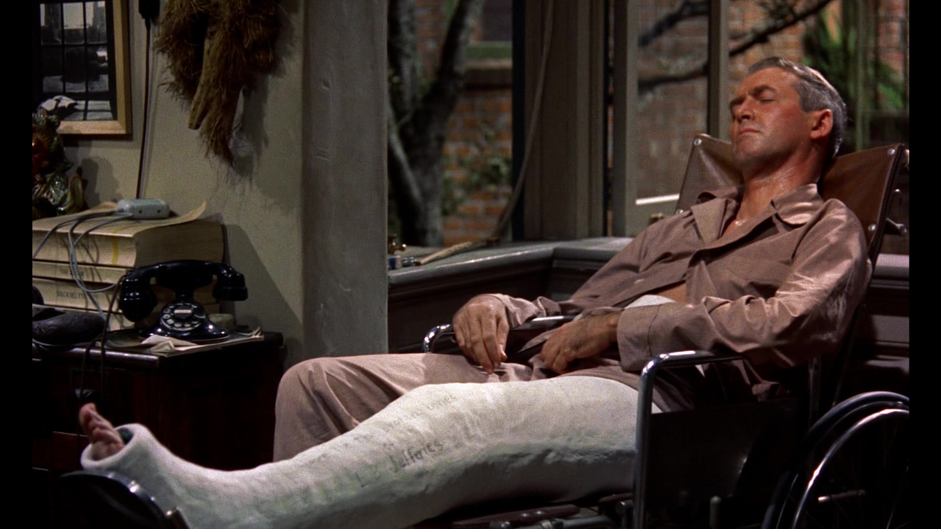 After Hitchcock’s roving camera gives us a neighbourhood baking in a hot summer, we meet the wheelchair-bound L.B. ‘Jeff’ Jefferies (James Stewart), in the final week of confinement before the cast on his broken leg is removed. Clearly he has spent the previous six weeks increasingly frustrated by inaction and increasingly interested by the people he can see from his window. Their various relationships — the antagonism between salesman Lars Thorwald (Raymond Burr) and his wife (Irene Winston), the suitors of dancer Miss Torso (Georgine Darcy) rendering her “like a queen bee with her pick of the drones”, the happy newlyweds (Havis Davenport and Rand Harper) who have moved in nearby — unfold gradually, through not-quite-overheard dialogue and some wonderfully demonstrative mime acting that hits just the right note of naturalism without ever being so subtle as to evade purpose.