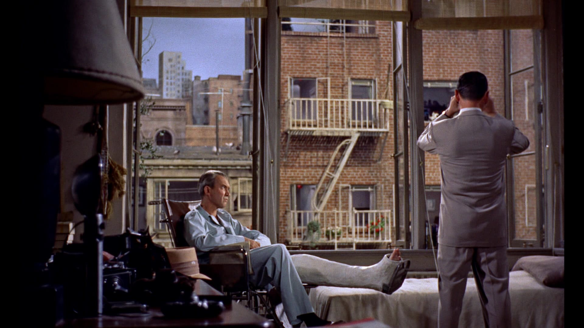 John Michael Hayes’s script, adapting Cornell Woolrich’s story ‘It Had to be Murder’ (1942), sets up some lovely contrasts: Jeff on the phone to his editor lamenting the trappings of inevitably-unhappy marriages (“In my neighbourhood [wives] still nag.”) as the Thorwalds argue, or Jeff and socialite Lisa Fremont (Grace Kelly) lightly-but-pointedly jousting over the possibilities of their shared future swiftly followed by Miss Lonelyhearts (Judith Evelyn) acting out a purely imagined date before collapsing in tears. Sure, Jeff seems like a discontented grouch when he can’t get excited about having Grace Kelly fawning over him (“It’s perfect. As always.”), but the various threads and themes are sewn so neatly into this opening sally that you almost forget you’re watching a film in the midst of all these different slices of life so tightly and ignorantly pressed up against each other.
