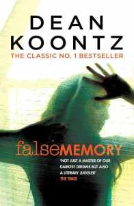 Rereading False Memory, I have to admit that I found it a little overlong — I tracked down a BCA hardcover that comes in at 626 pages, but my original paperback was definitely longer — and yet it’s still a fascinating book. I have now a far better appreciation of the way Koontz cooks up suspense by drawing events out over multiple detail-rich chapters (this is a guy who spent an entire chapter in Intensity with the heroine trying to escape being tied to a chair — and my palms are still sweating from that). Martie careening around her house finding terror in the most everyday items is just one of several incredibly-parsed set pieces that really does exceptional work in making you feel the irrational dread of it all: