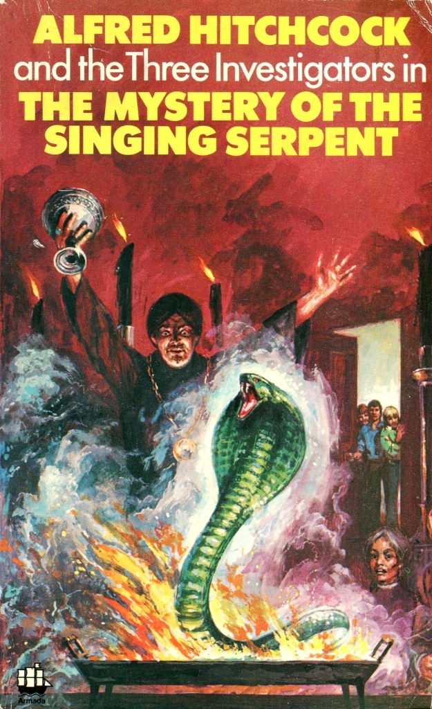 Mary Virginia Carey would, in time, write more books in the Three Investigators series than any of the four other writers so employed, but got off to a slightly wobbly start with The Mystery of the Flaming Footprints (1971). So will her second title, The Mystery of the Singing Serpent (1972), find her on better form?