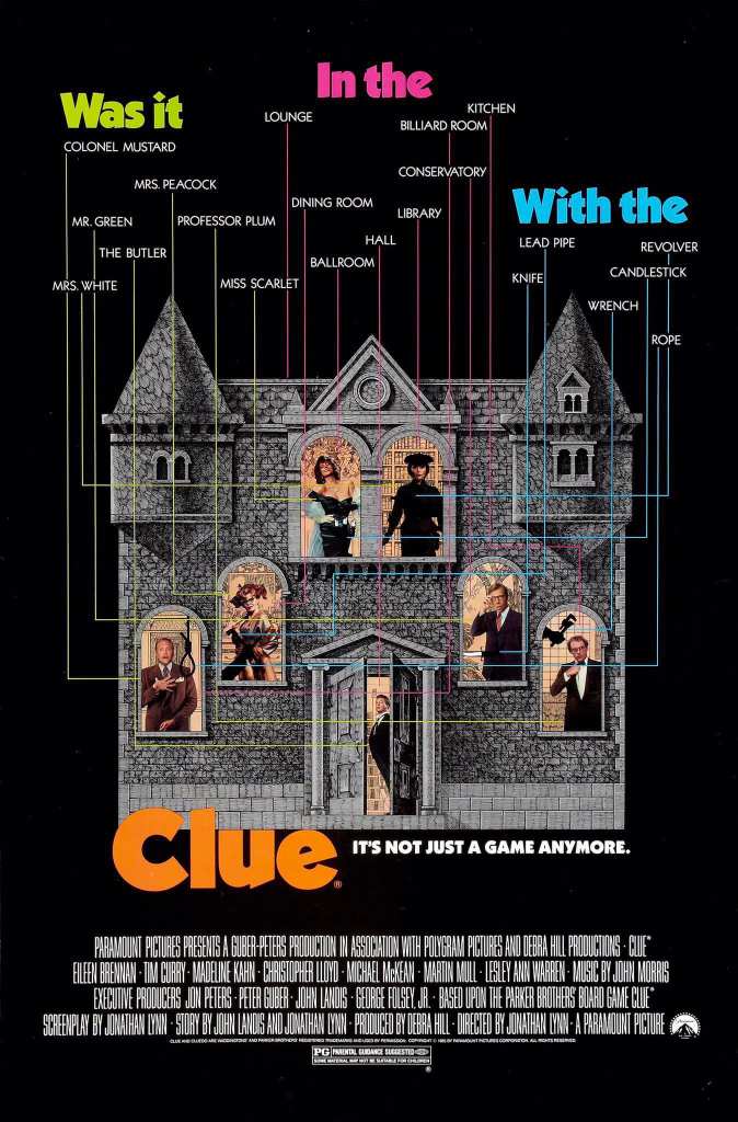 Given the voracity with which Hollywood will seize upon almost any existing intellectual property — video game! card game! product placement! sequel to product placement! spin-off from sequel to product placement! — and make it into a probably disappointing movie, it’s amazing that Clue (1985), based on one of the dullest board games in existence, turned out as well as it did.